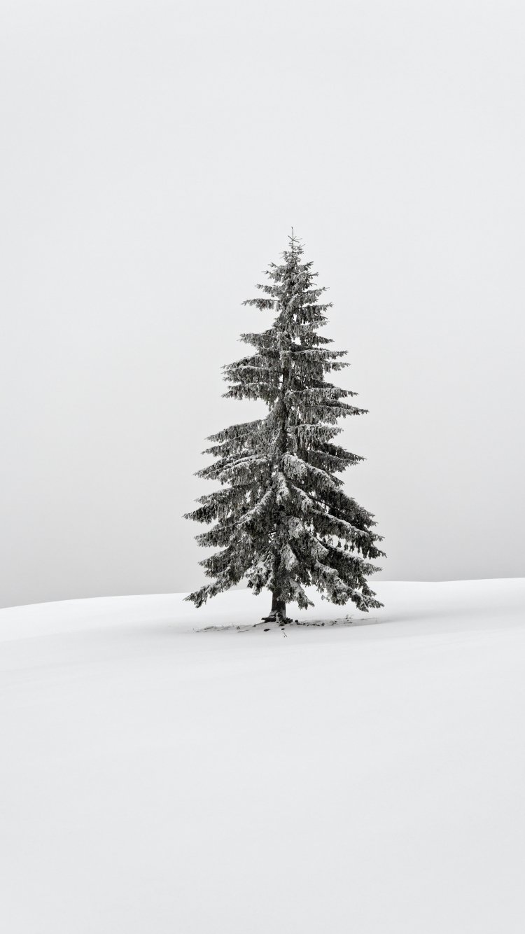 Обои: зима, хвойное дерево - 750x1334