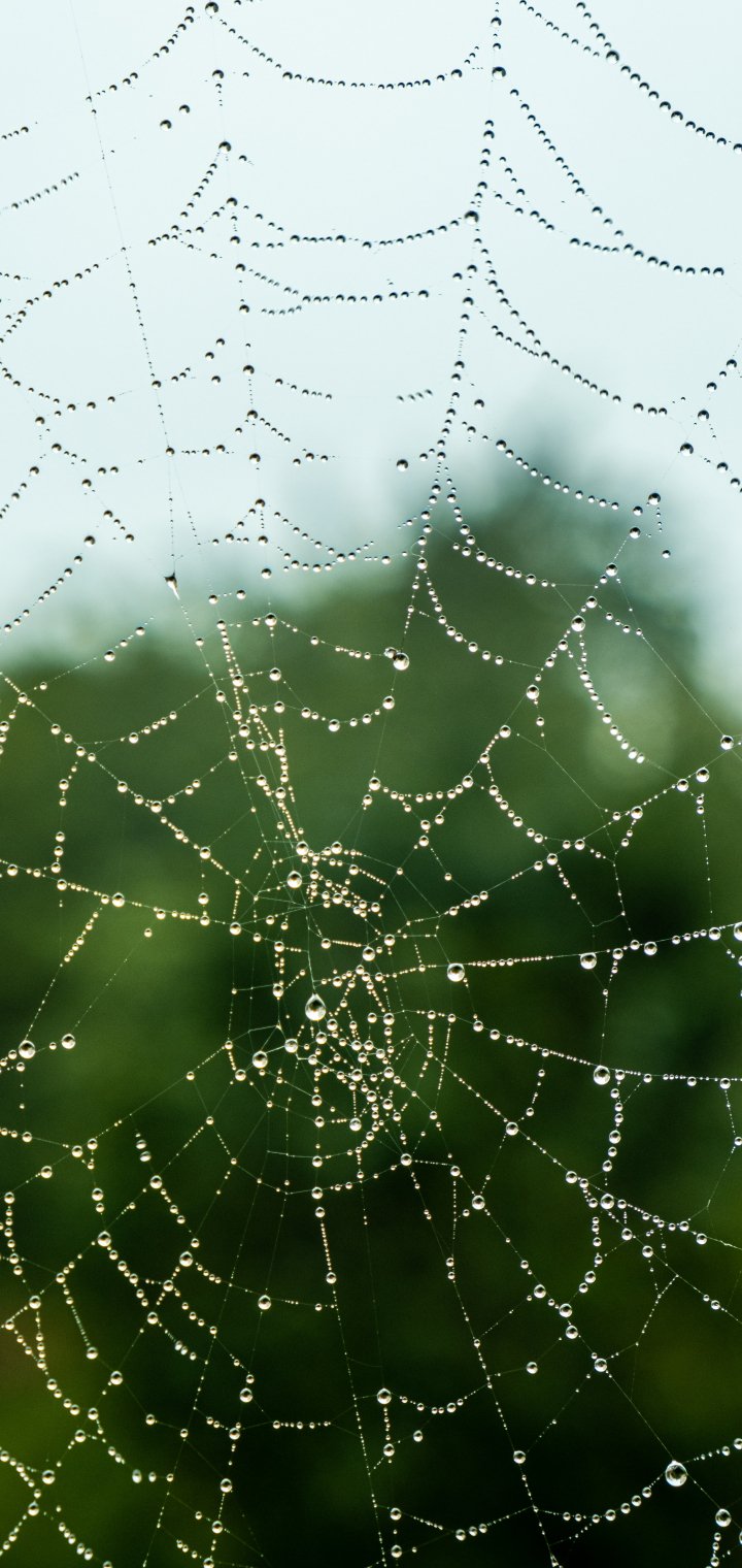 Обои: паутина, кружево, роса - 720x1520