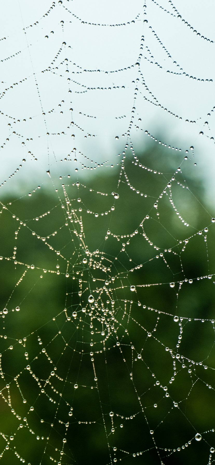 Обои: паутина, кружево, роса - 828x1792