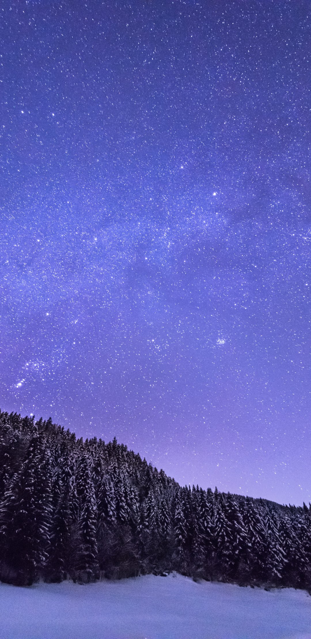 Обои: звездная ночь, лес - 1080x2220