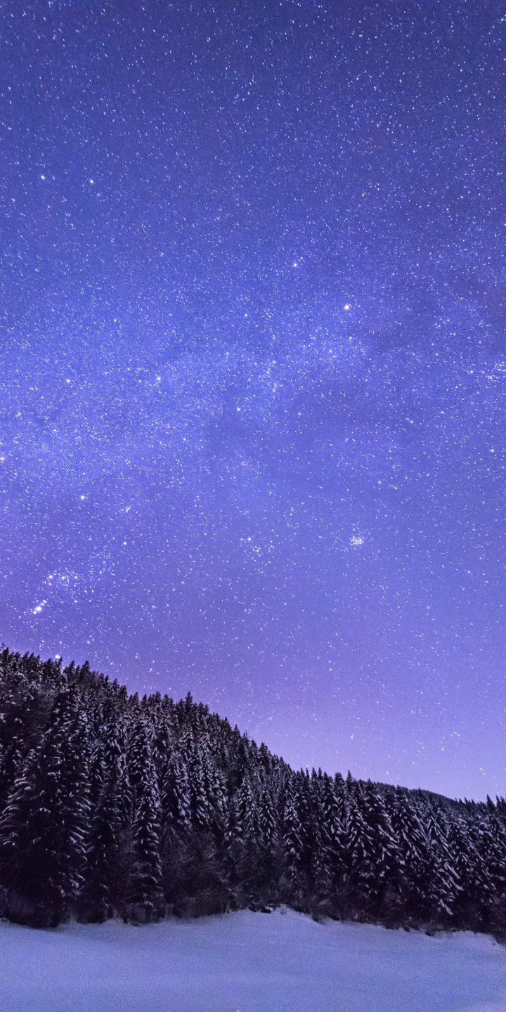 Обои: звездная ночь, лес - 720x1440