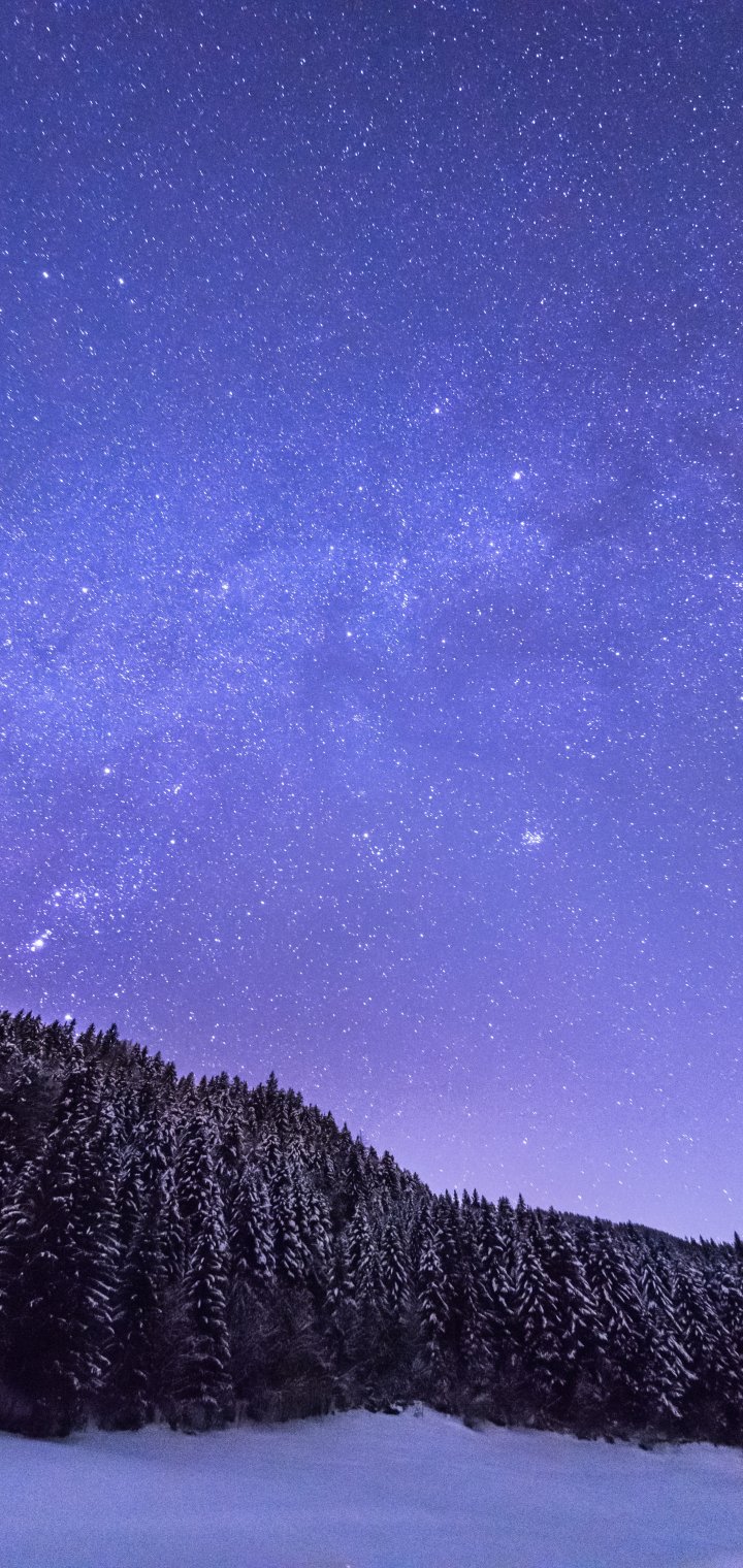 Обои: звездная ночь, лес - 720x1520