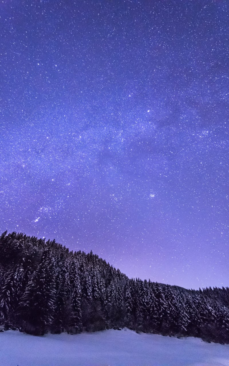 Обои: звездная ночь, лес - 800x1280