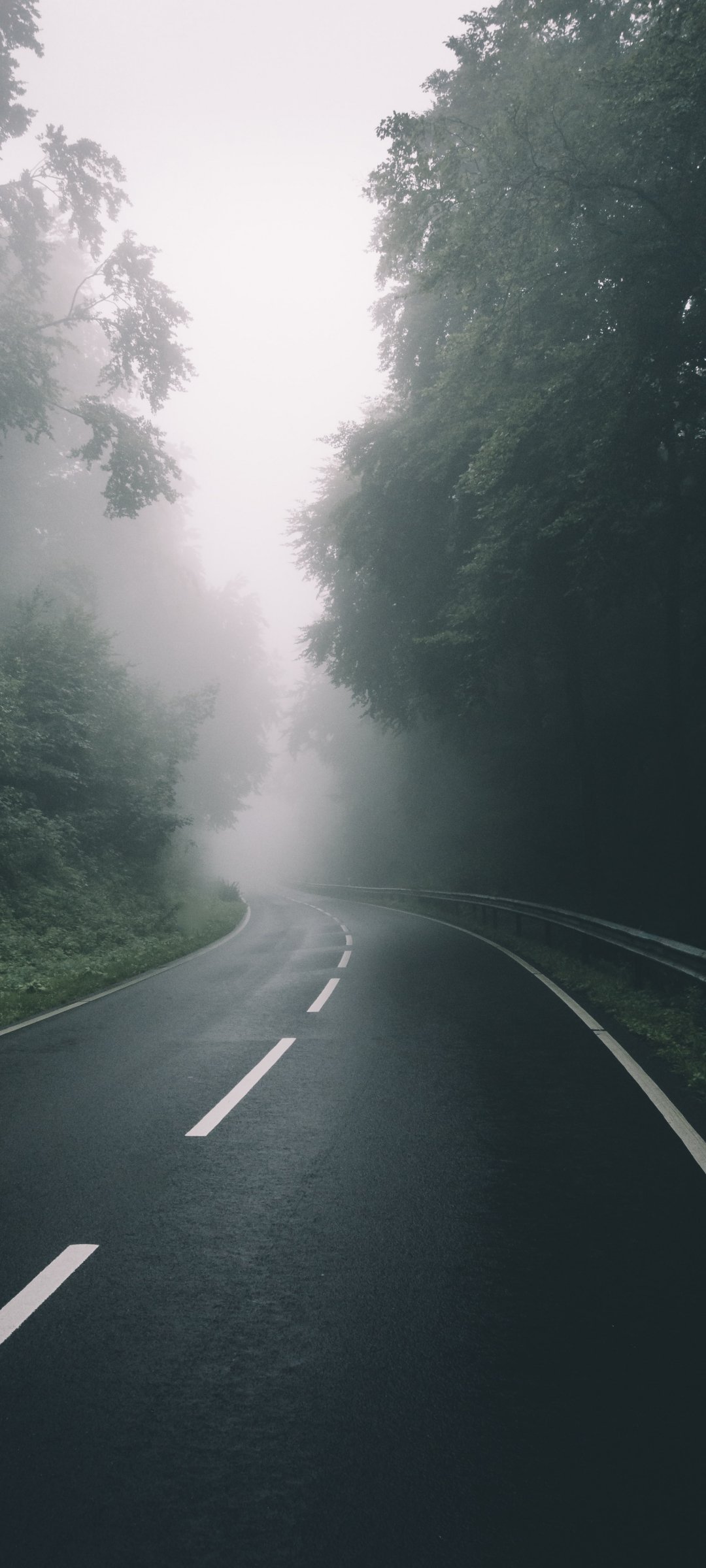 Обои: дорога, лес, туман - 1080x2400