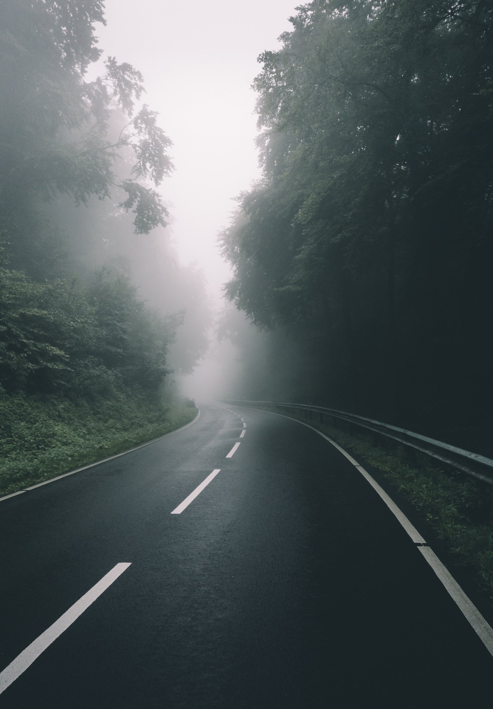 Обои: дорога, лес, туман - 1640x2360