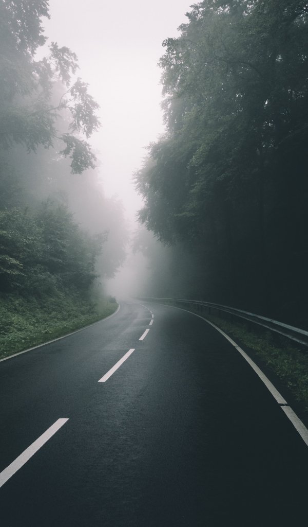Обои: дорога, лес, туман - 600x1024