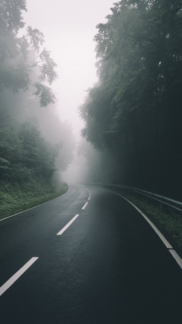 Обои: дорога, лес, туман - 640x1136