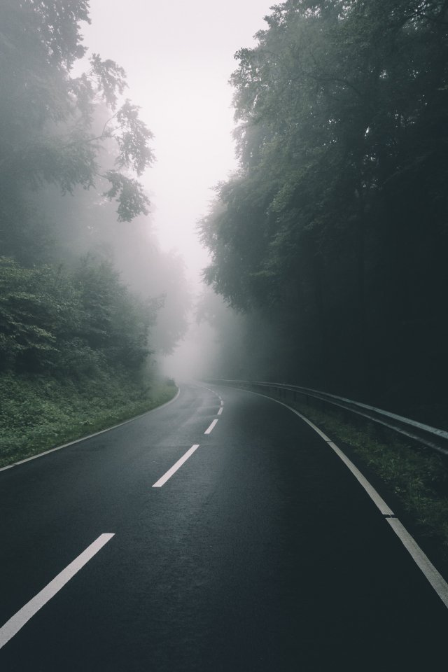 Обои: дорога, лес, туман - 640x960