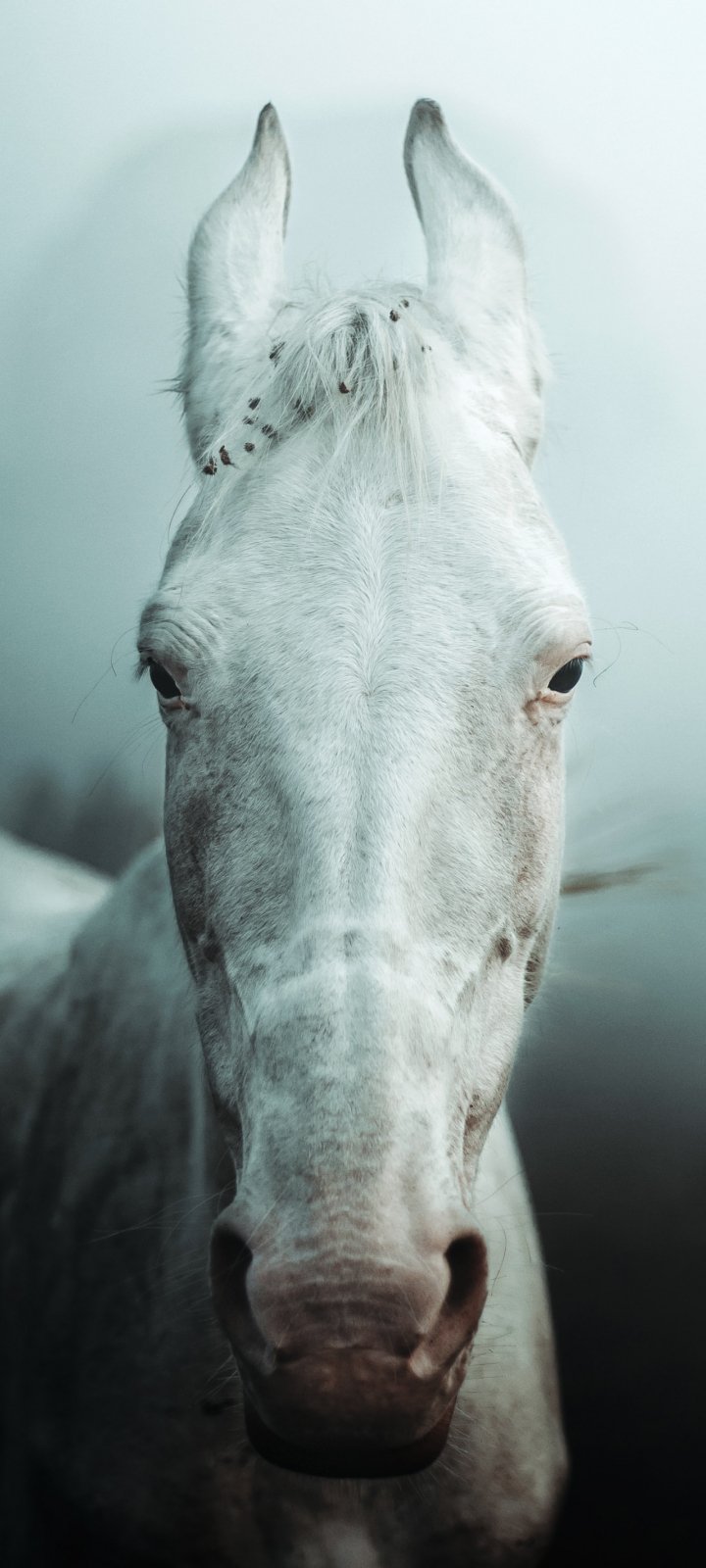 Обои: белая лошадь, туман - 720x1600