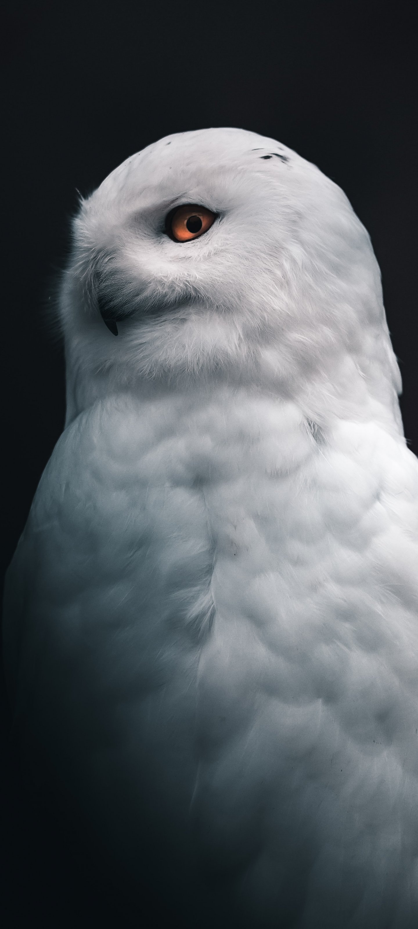 Обои: снежная сова, желтые глаза - 1440x3200