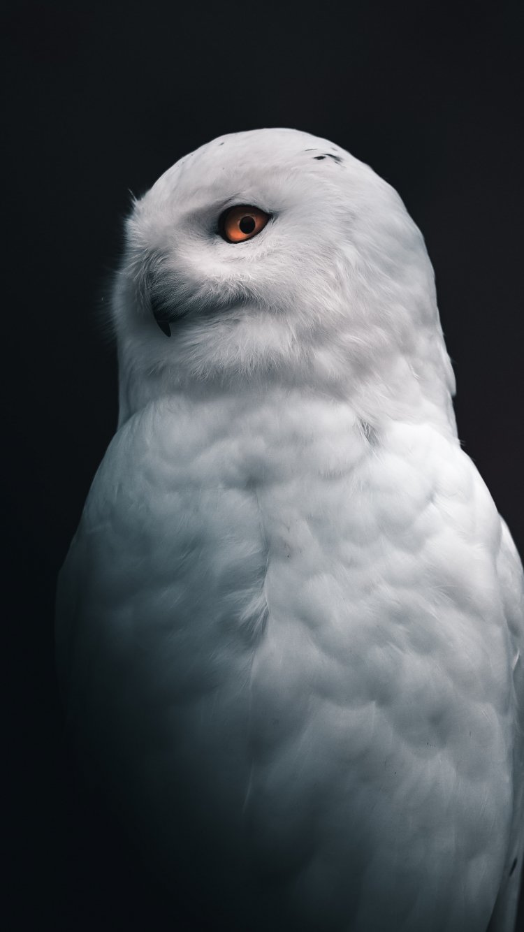 Обои: снежная сова, желтые глаза - 750x1334