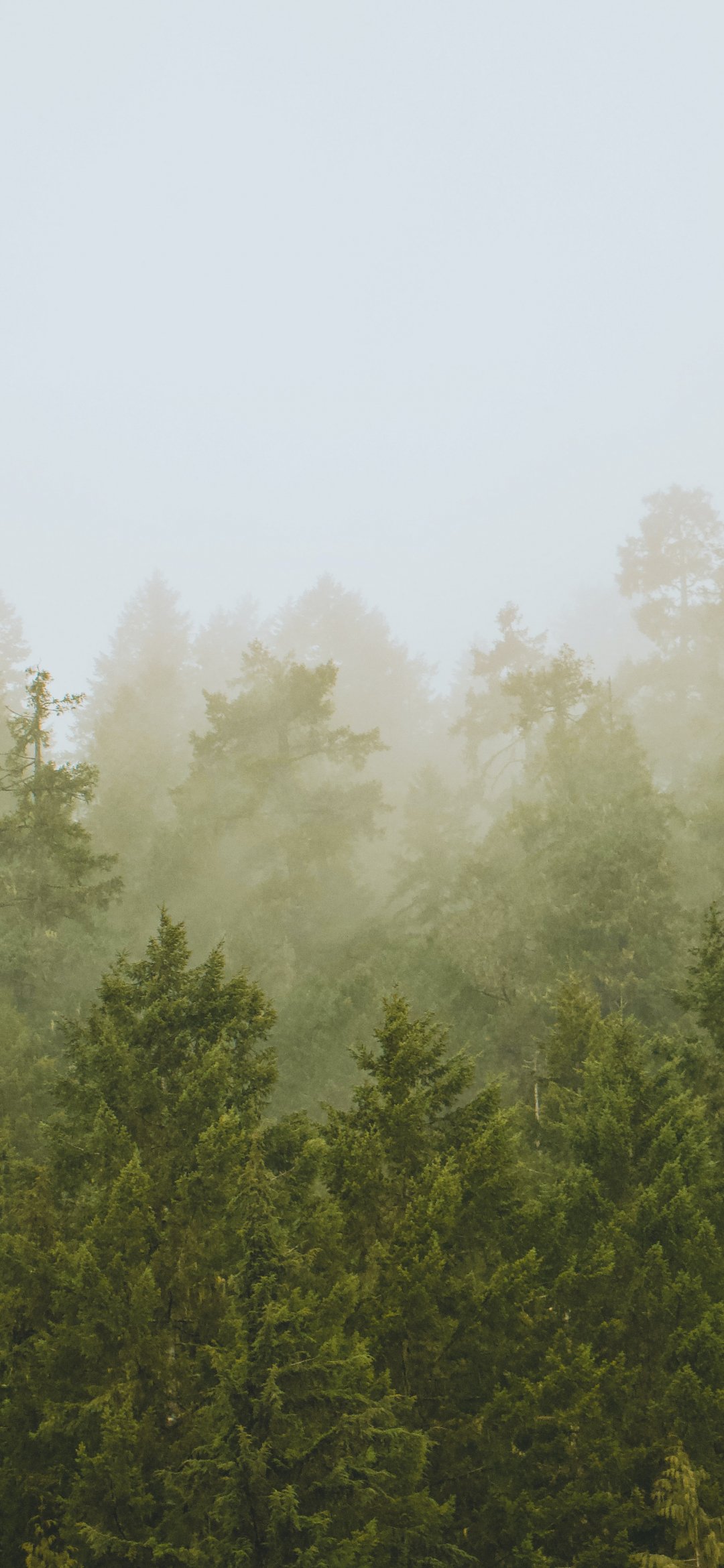 Обои: хвойный лес, туман - 1080x2340