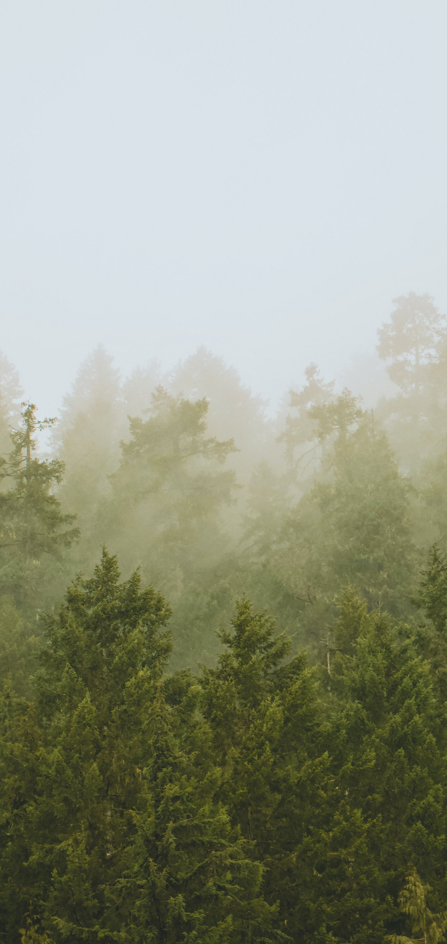 Обои: хвойный лес, туман - 1440x3040
