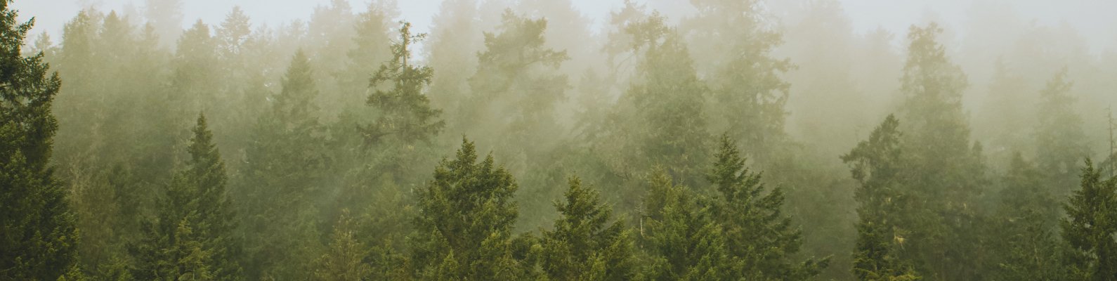 Обои: хвойный лес, туман - 1590x400