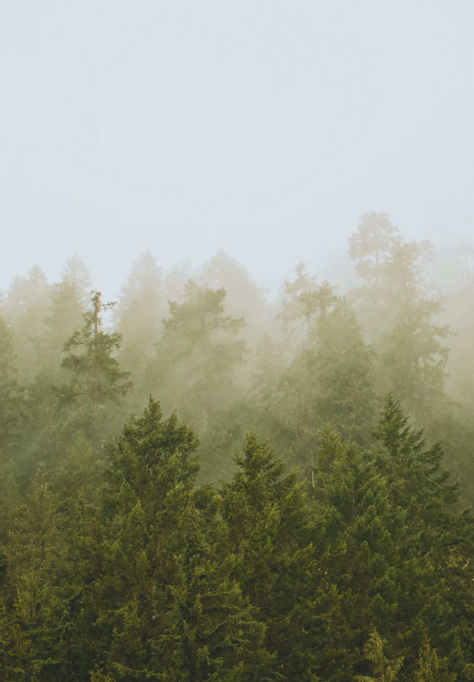 Обои: хвойный лес, туман - 1640x2360
