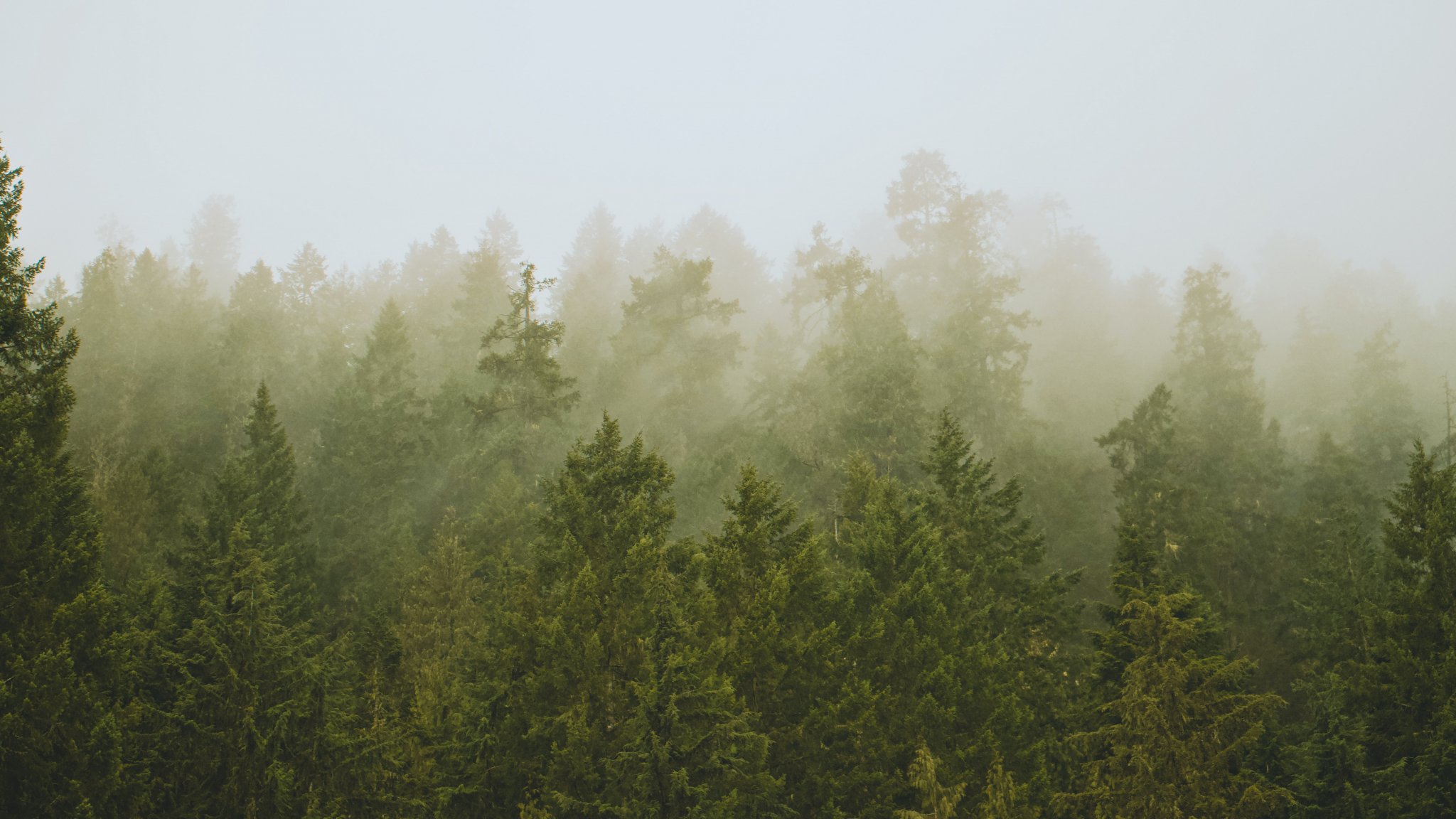 Обои: хвойный лес, туман - 2048x1152