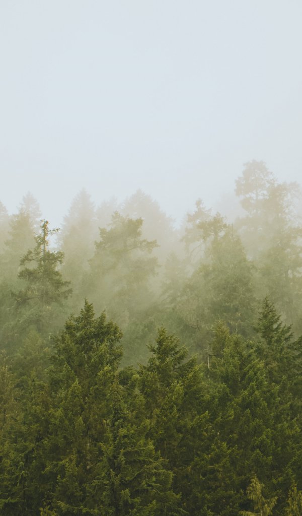 Обои: хвойный лес, туман - 600x1024