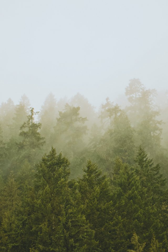 Обои: хвойный лес, туман - 640x960