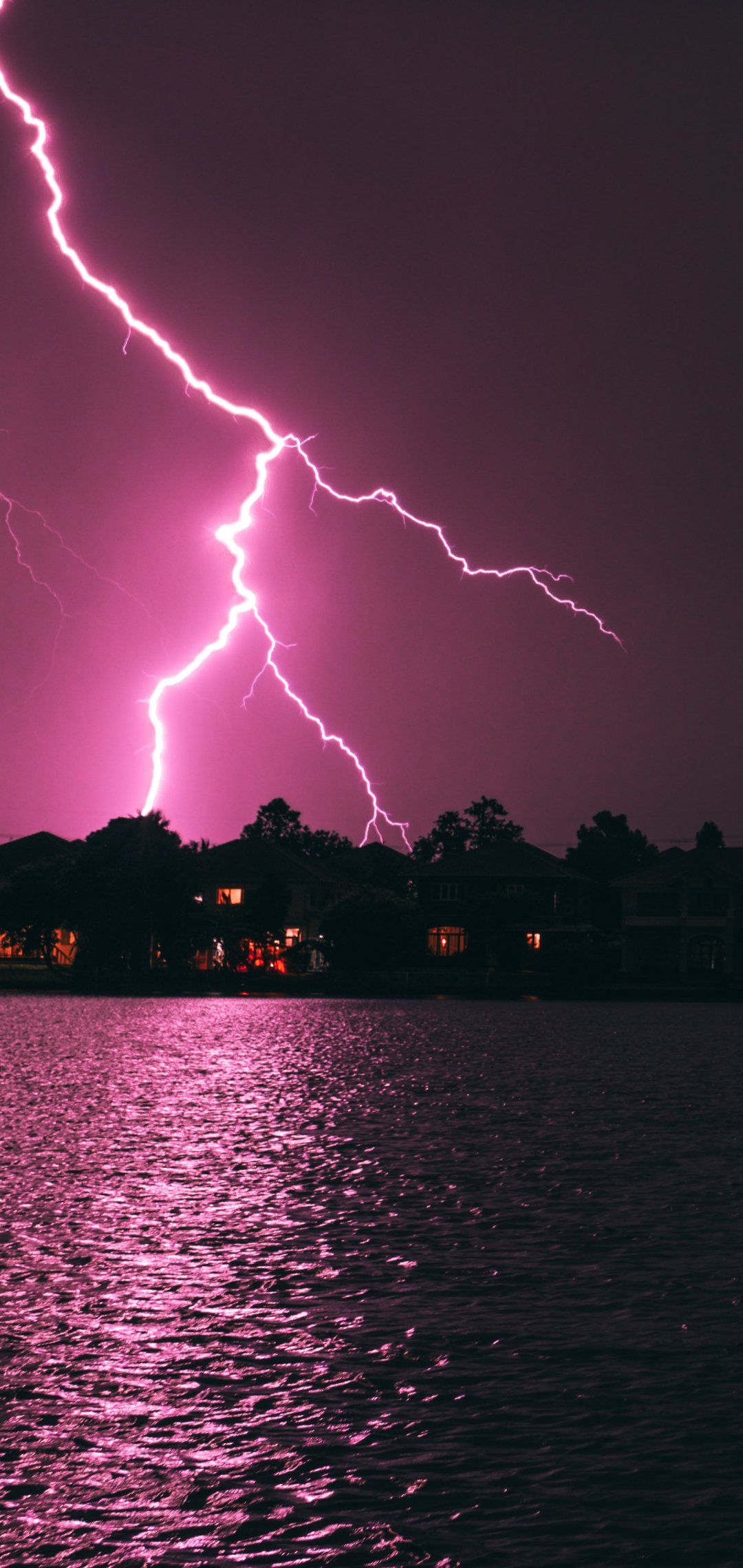 Обои: молния, ночь, побережье - 1080x2280