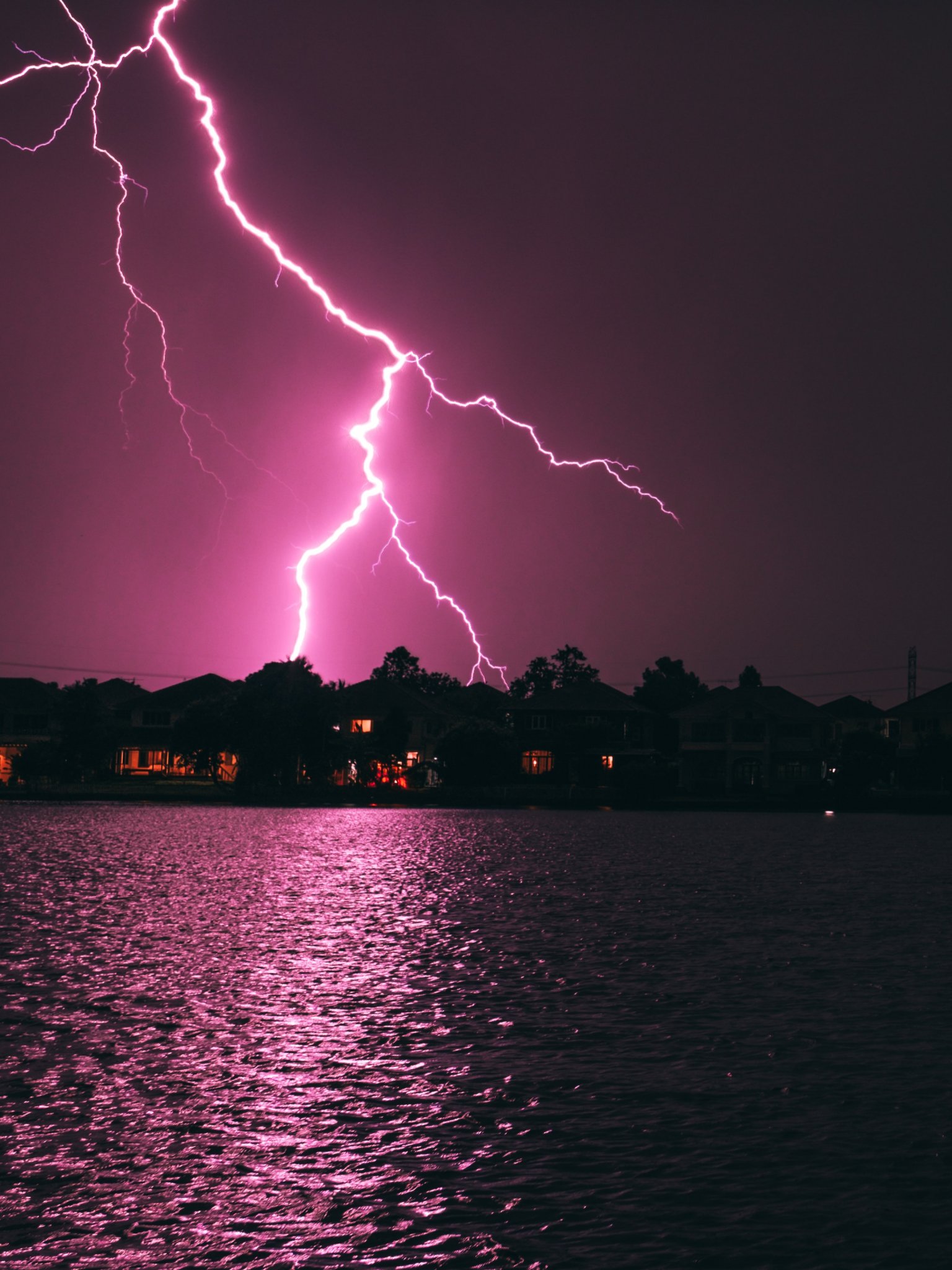 Обои: молния, ночь, побережье - 1536x2048