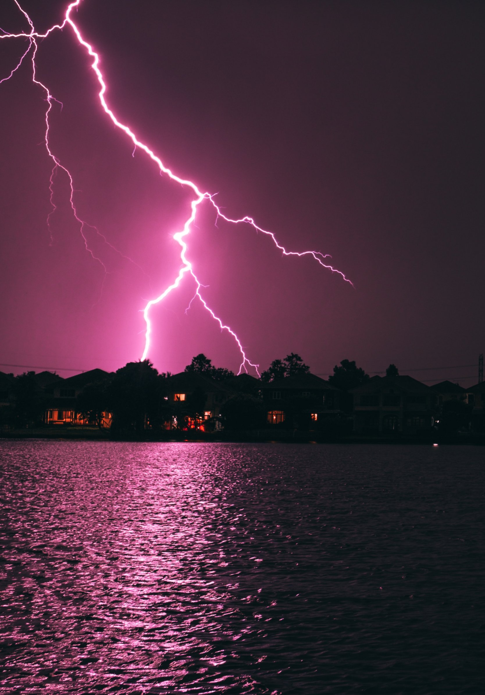 Обои: молния, ночь, побережье - 1668x2388