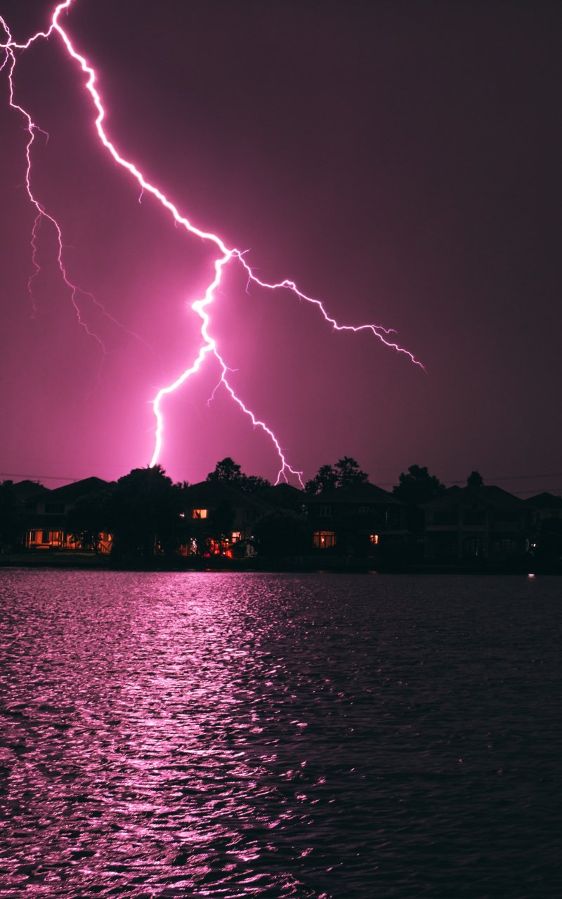 Обои: молния, ночь, побережье - 800x1280