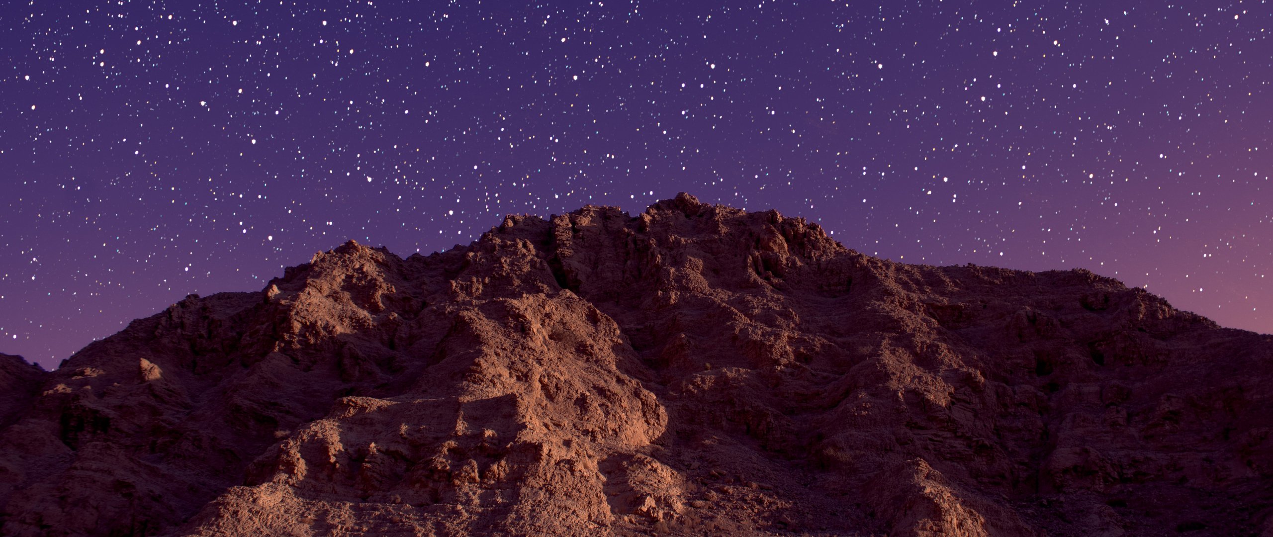 Обои: звездное небо, горные породы - 2560x1080