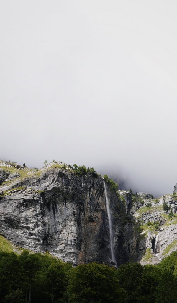 Обои: Франция, горы, водопад, лес - 600x1024