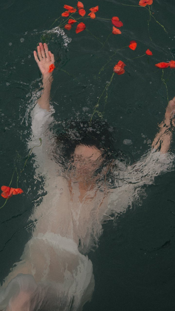 Обои: под водой, девушка, цветы - 720x1280