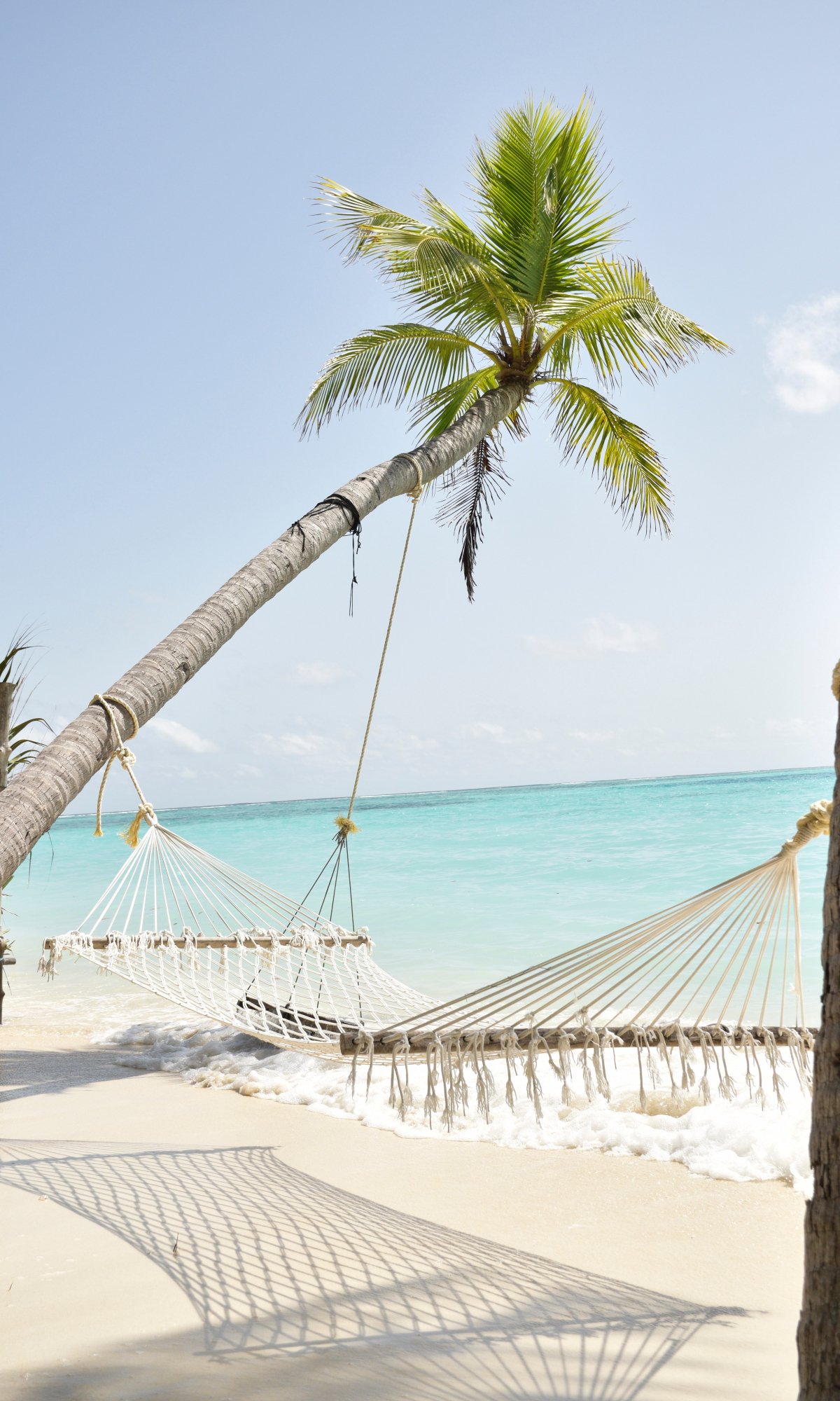 Обои: Мальдивы, гамак, пальма - 1200x2000