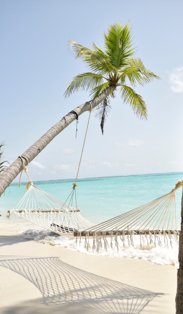 Обои: Мальдивы, гамак, пальма - 600x1024
