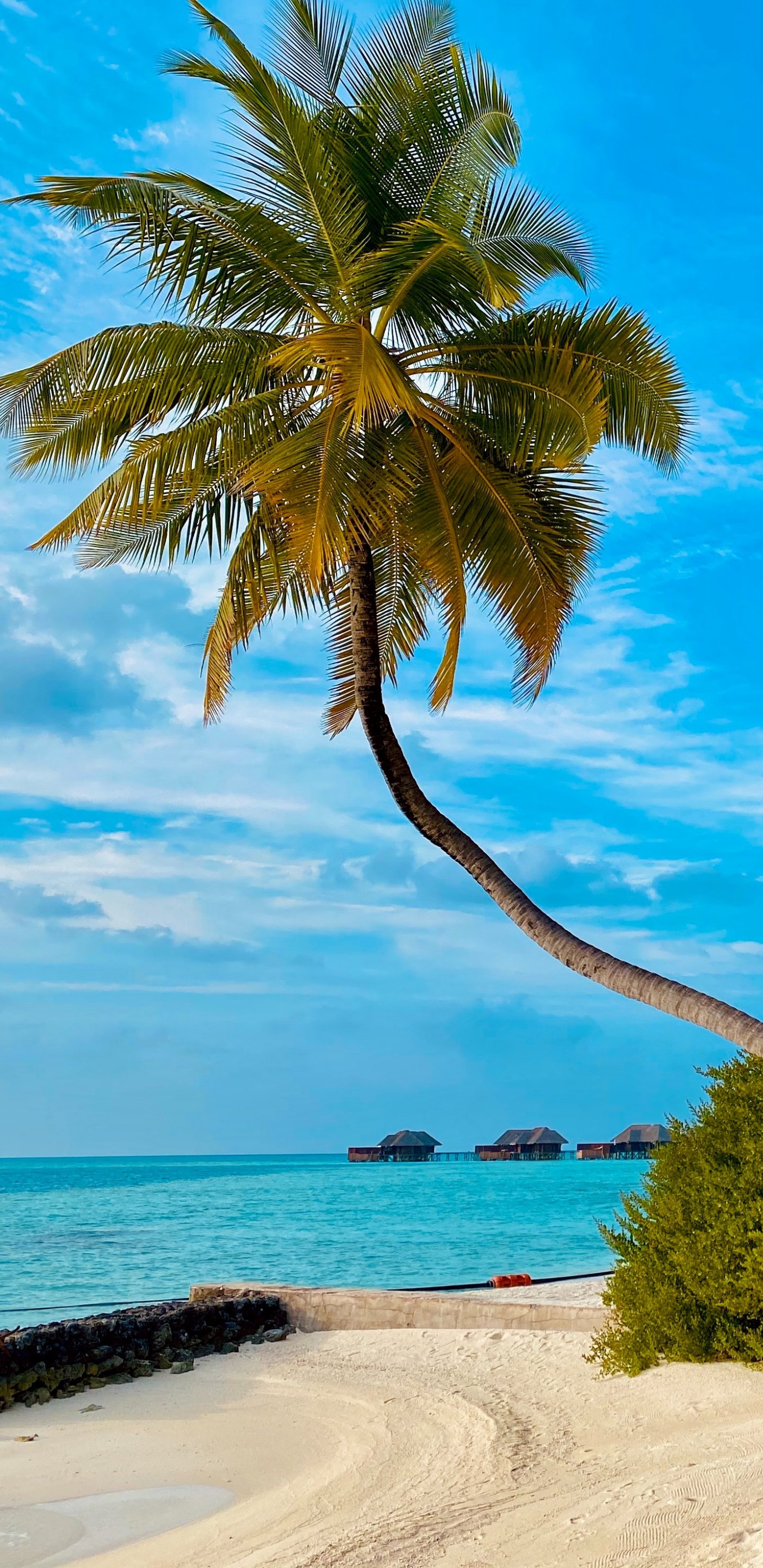 Обои: пляж, Мальдивы, пальмы - 1440x2960