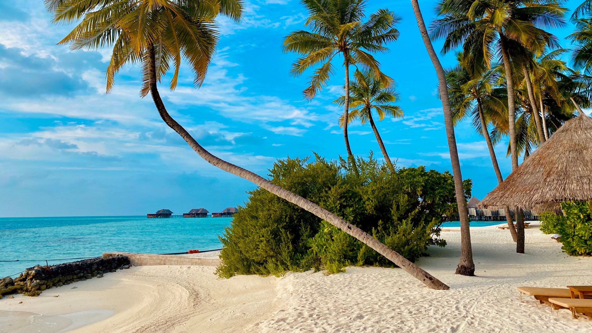 Обои: пляж, Мальдивы, пальмы - 1920x1080