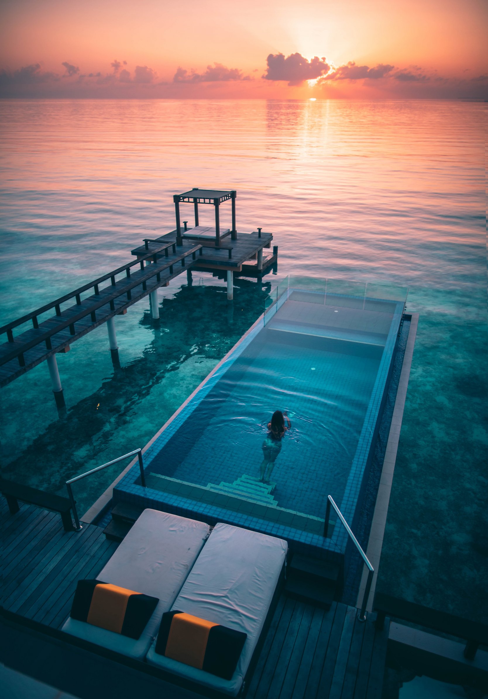 Обои: Мальдивы, закат, бассейн - 1668x2388