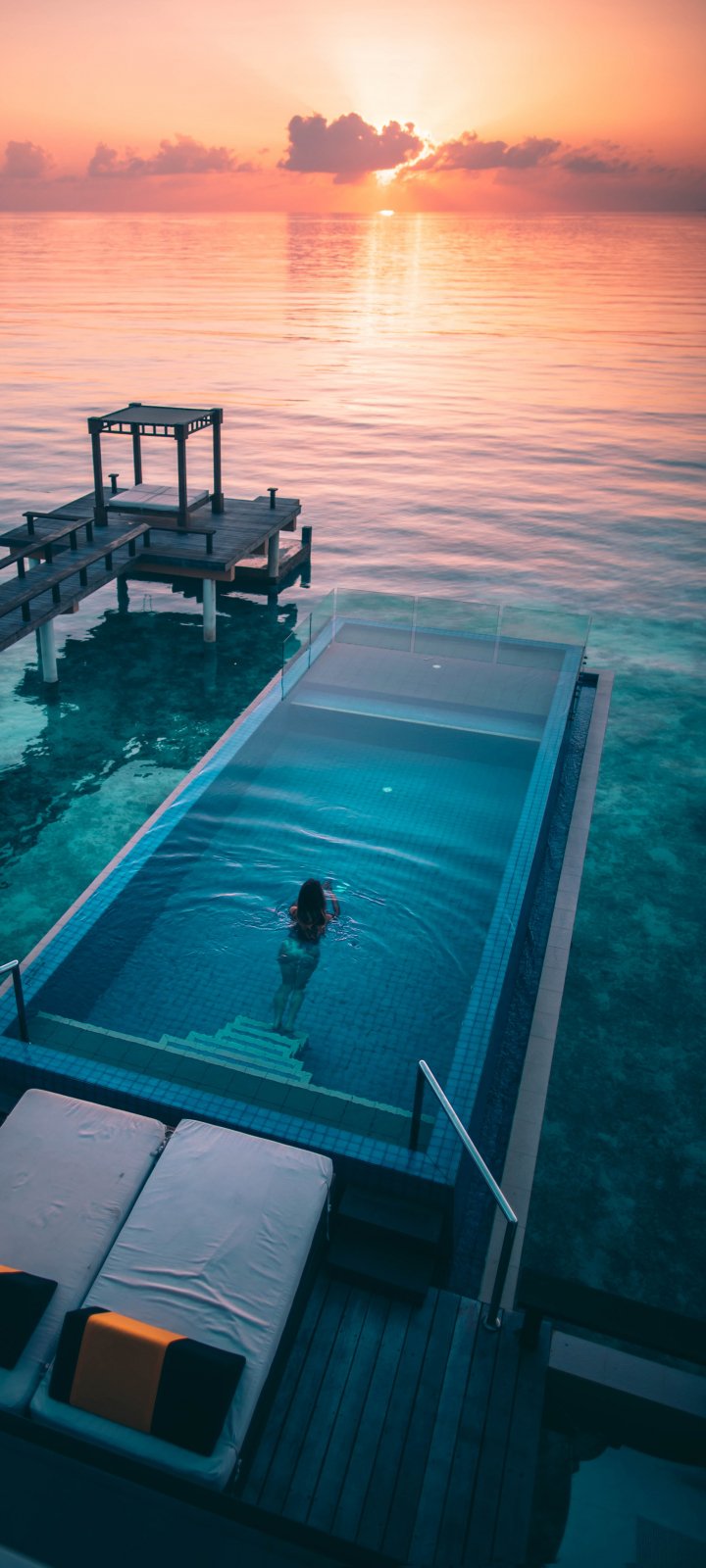 Обои: Мальдивы, закат, бассейн - 720x1600