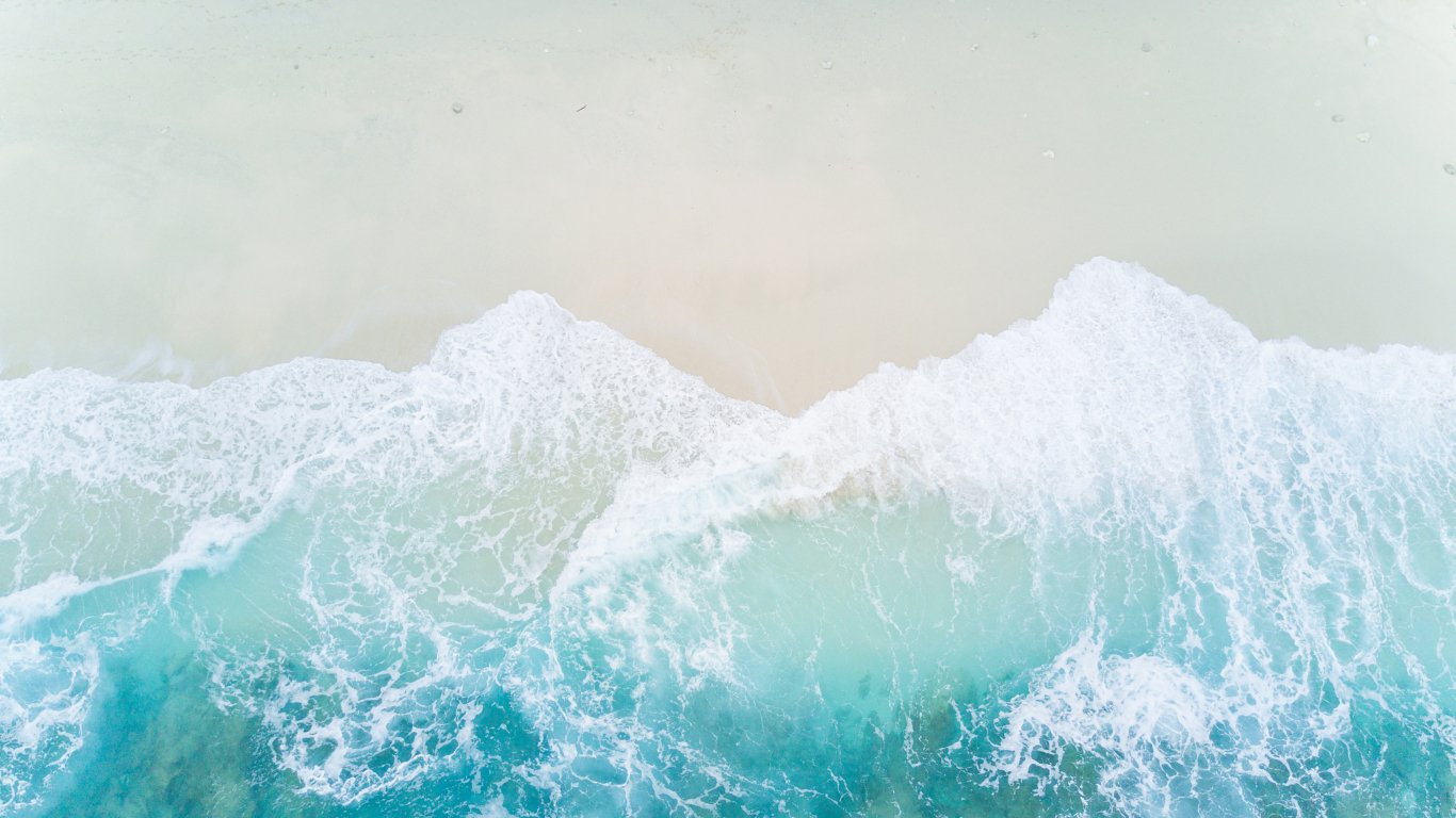 морские волны, пляж, вид с верху