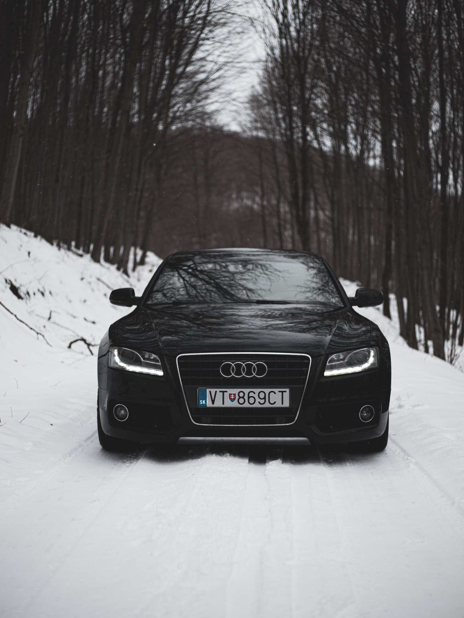 Обои: Audi A5, черное и белое, зима - 1620x2160