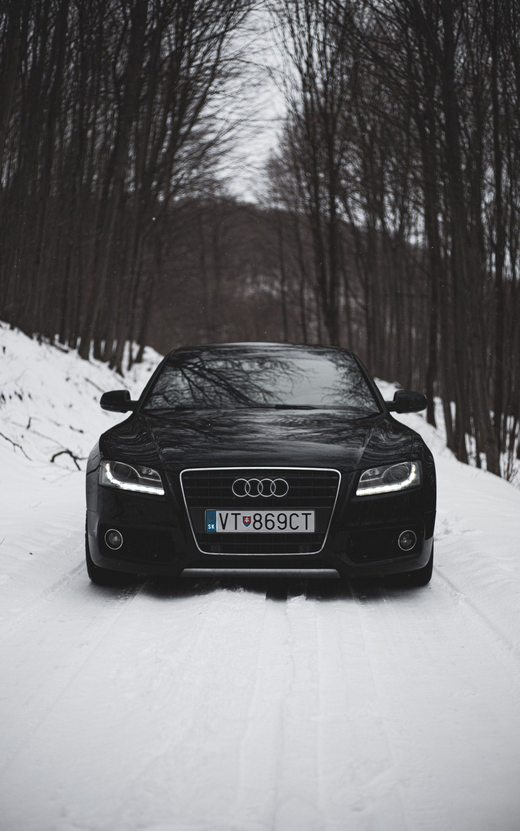 Обои: Audi A5, черное и белое, зима - 1752x2800