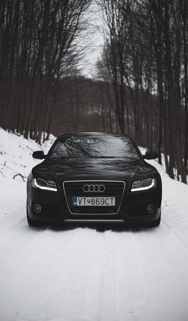 Обои: Audi A5, черное и белое, зима - 600x1024