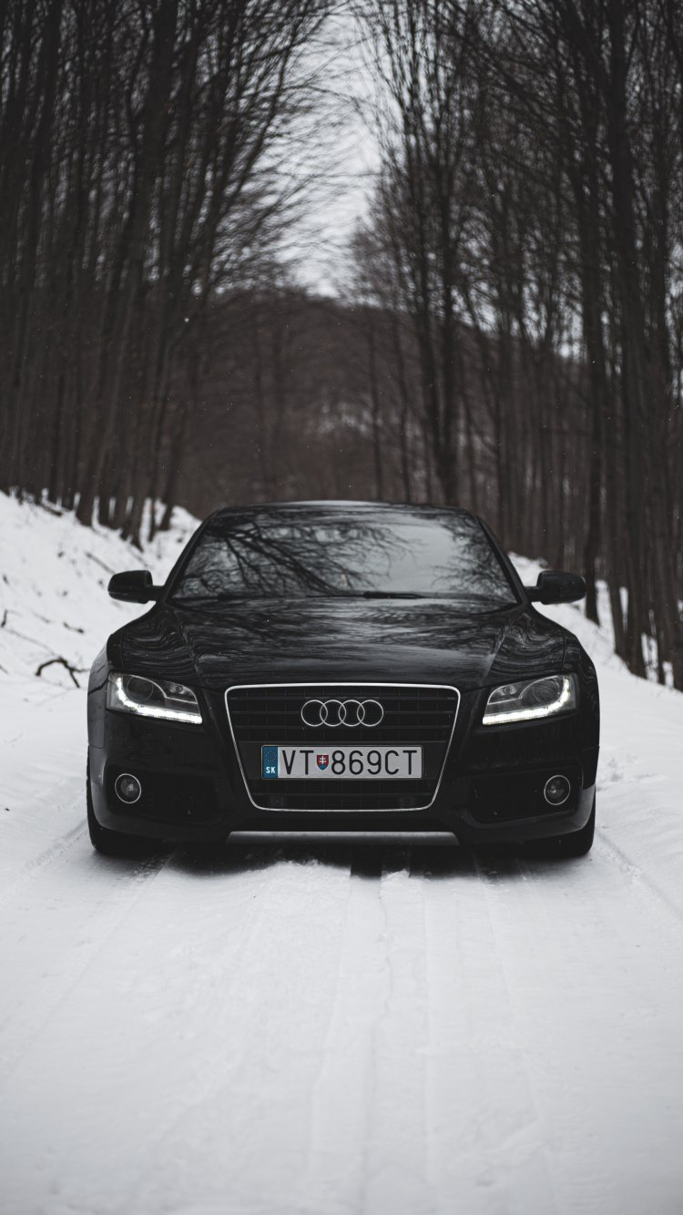 Обои: Audi A5, черное и белое, зима - 750x1334