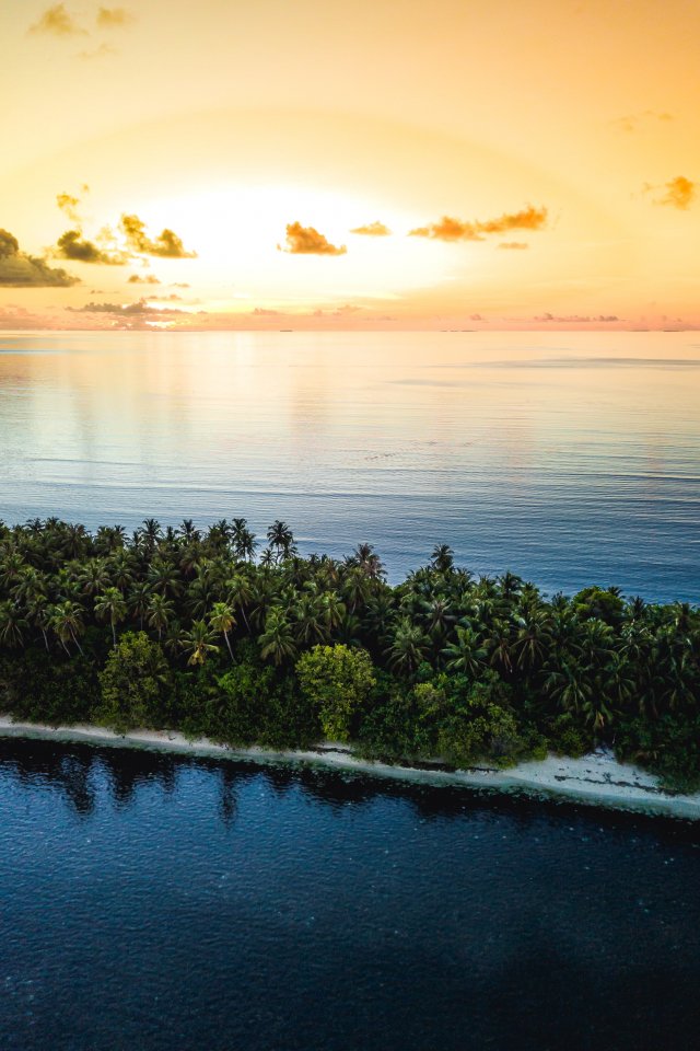Обои: Мальдивы, остров, закат - 640x960