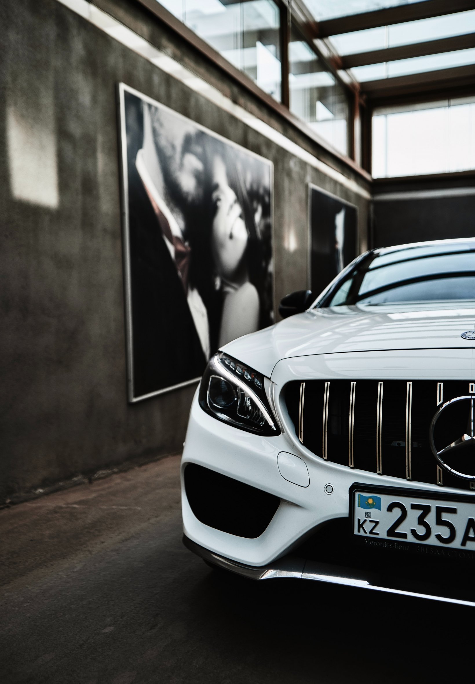 Обои: белый Mercedes, гараж - 1640x2360