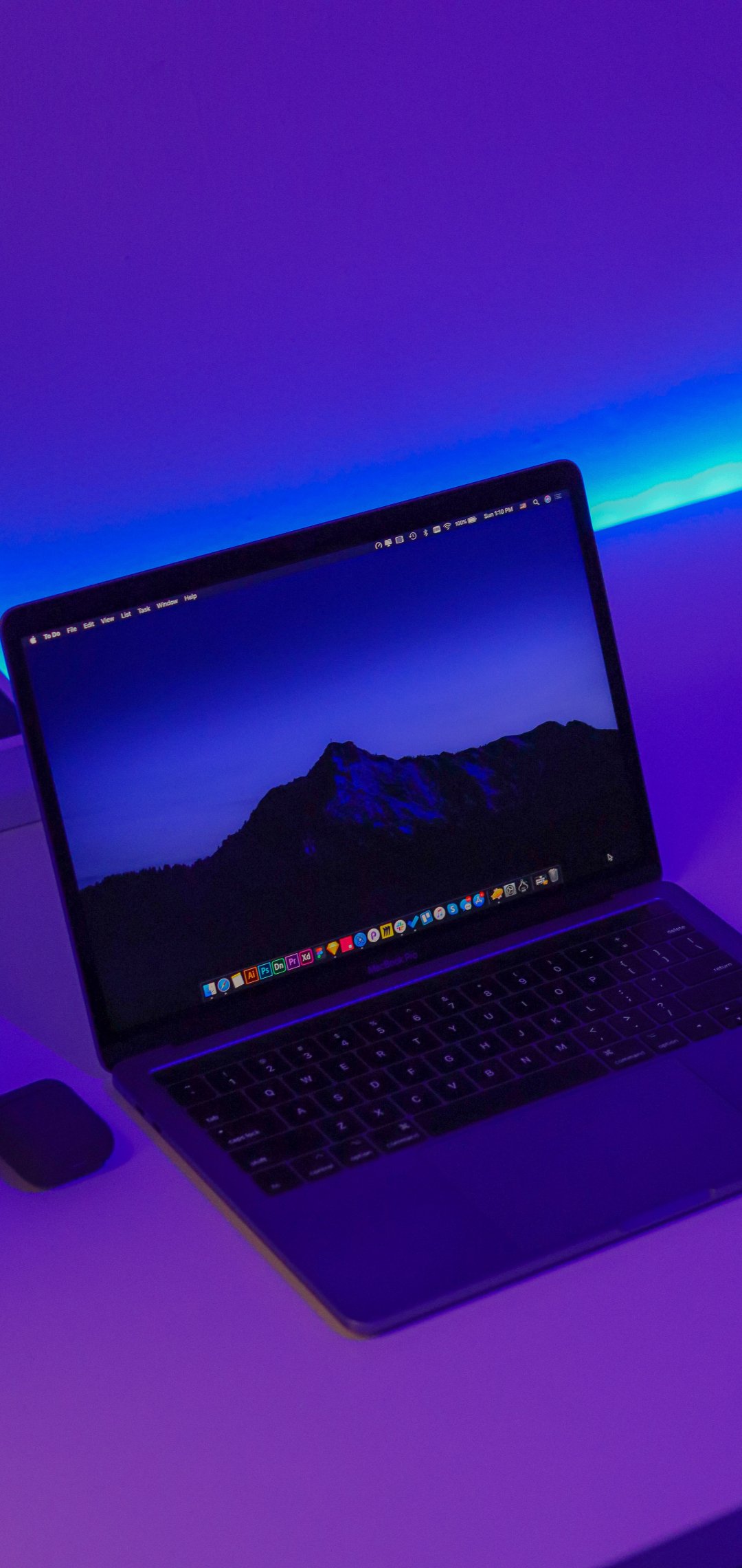 Обои: ноутбук, фиолетовый, интерьер - 1080x2280