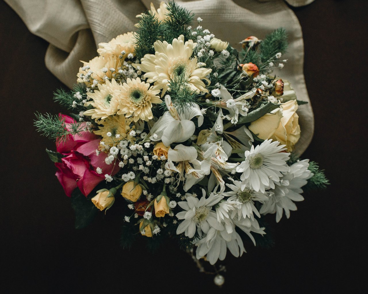 Обои: букет цветов, на черном фоне - 1280x1024