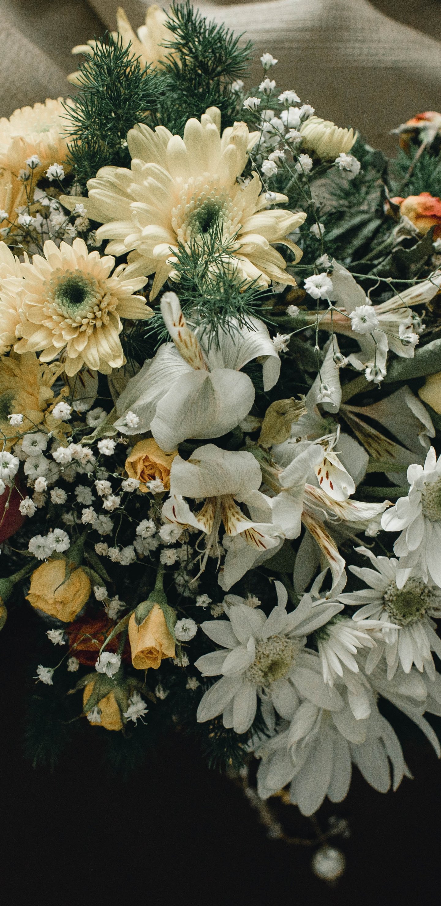 Обои: букет цветов, на черном фоне - 1440x2960