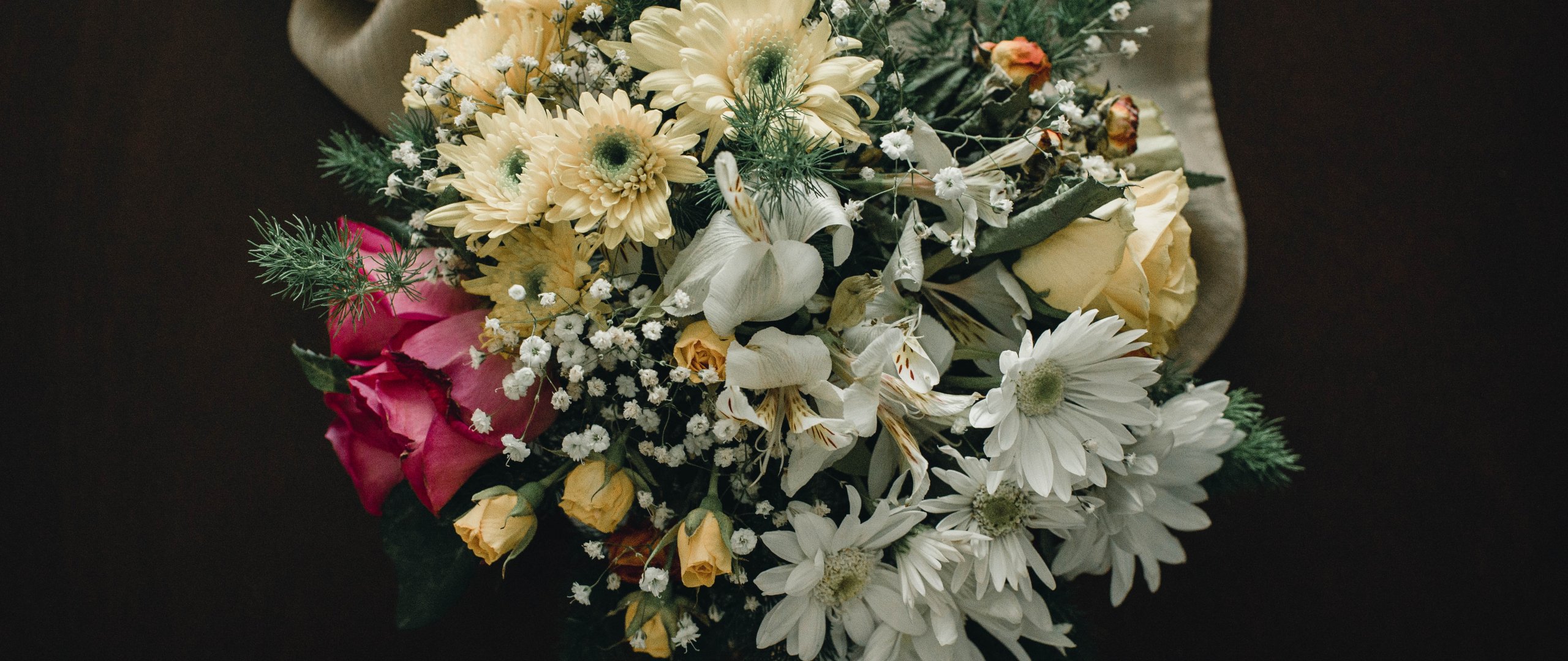 Обои: букет цветов, на черном фоне - 2560x1080