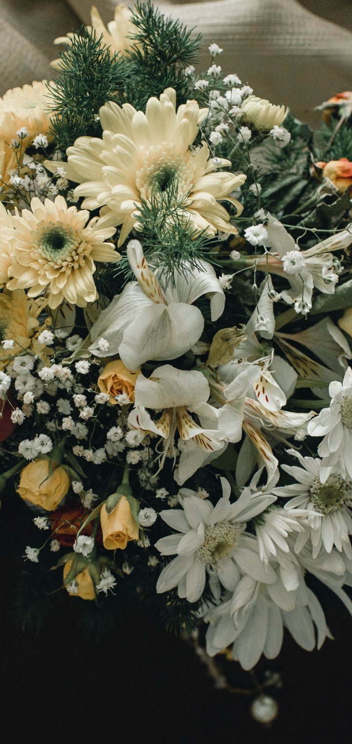 Обои: букет цветов, на черном фоне - 720x1520