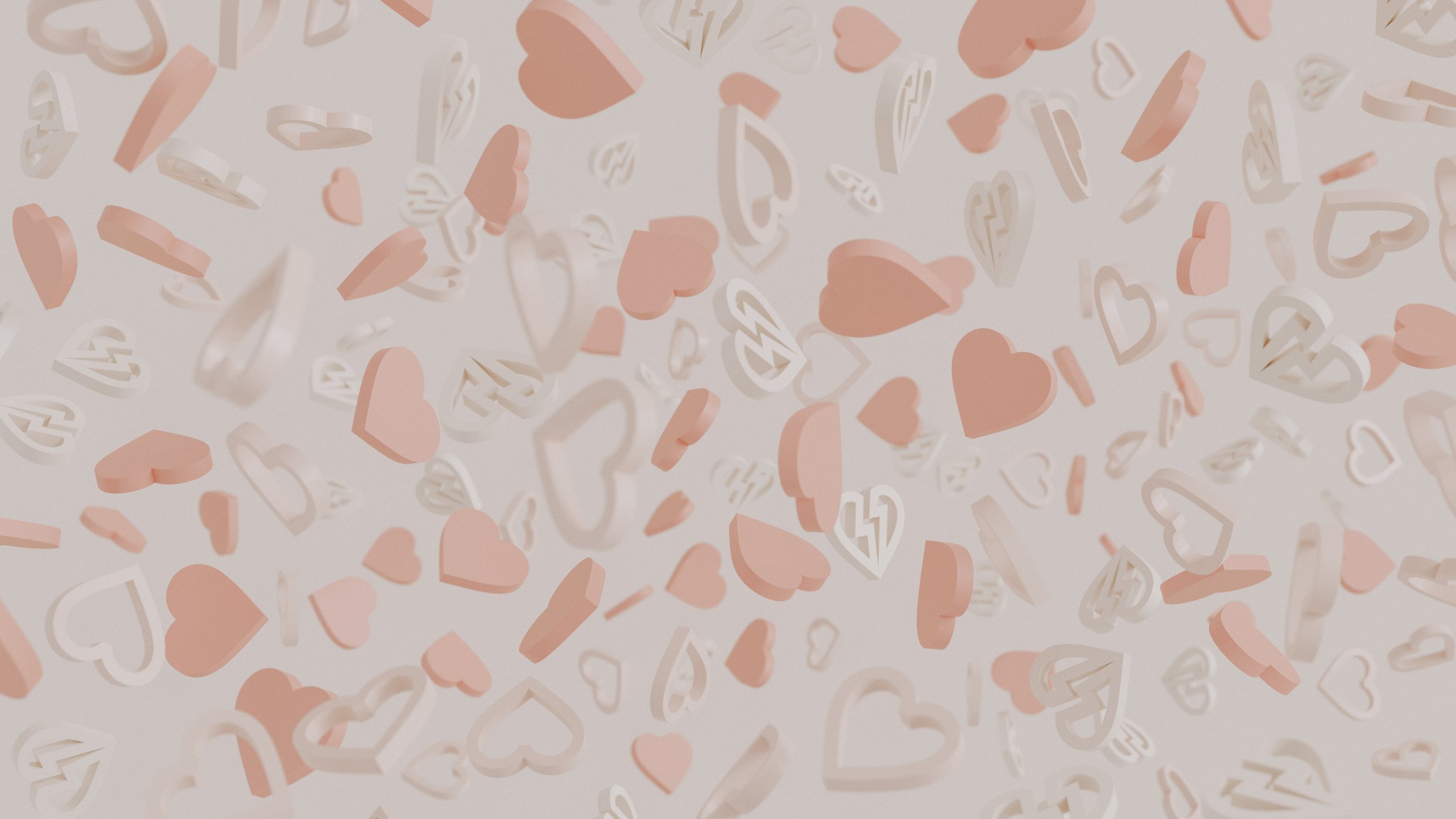 Обои: День святого Валентина, сердечки, бежевый - 2560x1440