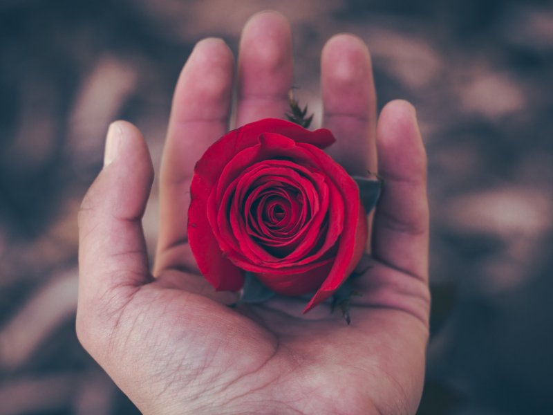 Обои: День святого Валентина, роза в ладони, романтика - 800x600