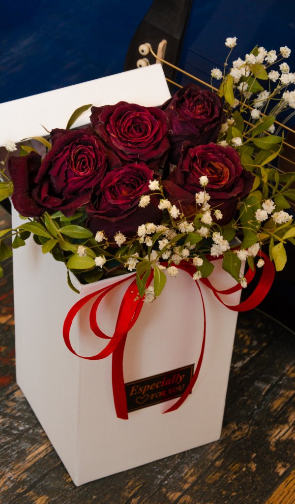 Обои: День святого Валентина, букет роз, подарок - 600x1024